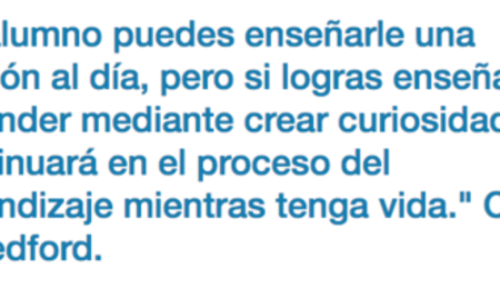 “Al alumno puedes enseñarle una lección al día, pero si logras enseñarle a aprender mediante crear curiosidad, continuará en el proceso del aprendizaje mientras tenga vida." Clay P. Bedford.